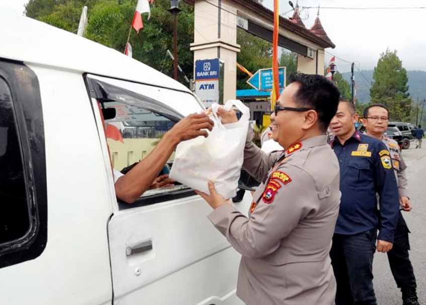 Jajaran Polres Padang Pariaman membagikan sembako untuk sopir angkutan umum usai pemerintah naikkan harga BBM. [Foto: Dok. Polres Padang Pariaman]