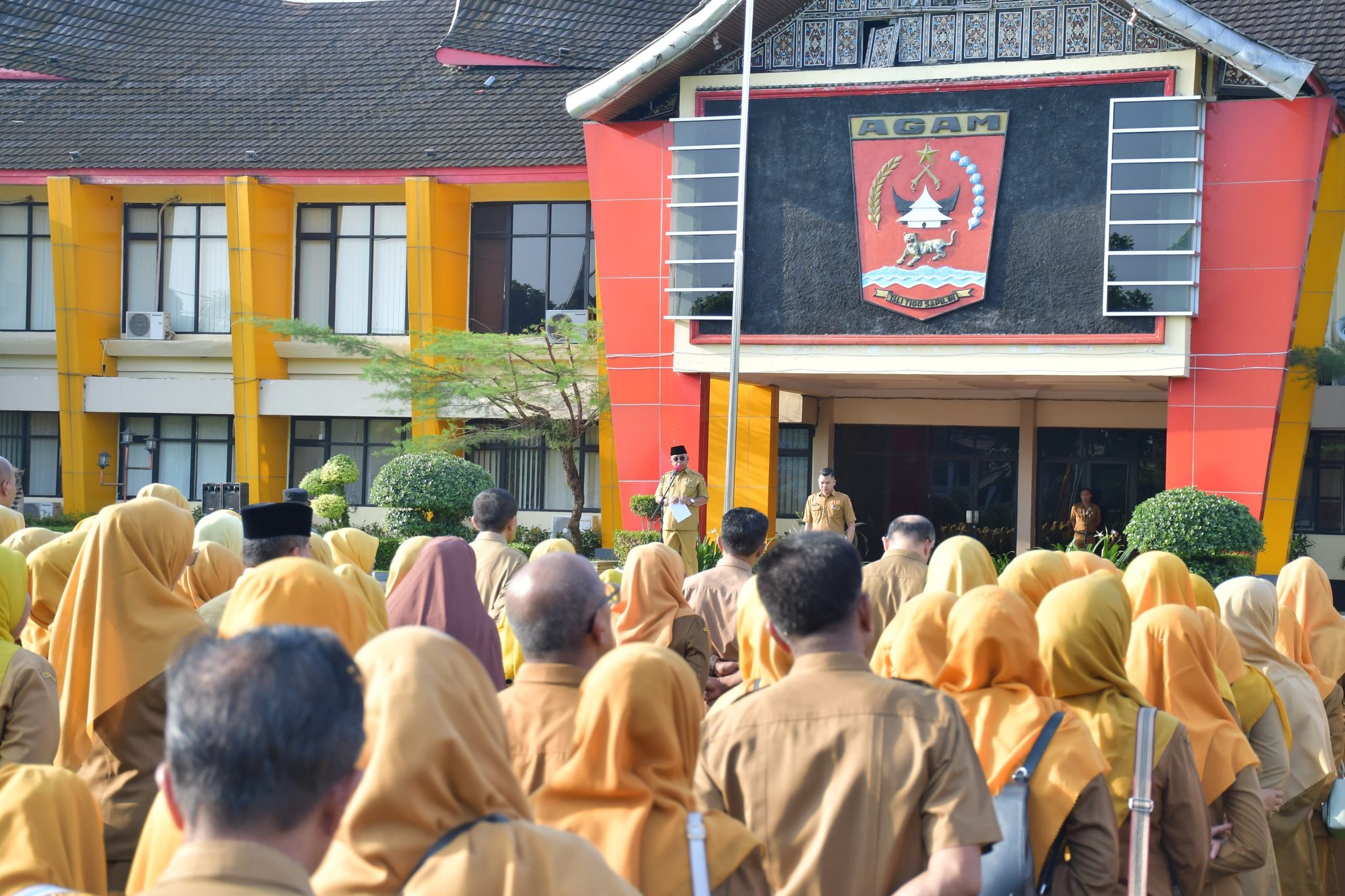 Apel gabungan ini dihadiri oleh seluruh pejabat eselon II, III, dan IV, serta seluruh pegawai di lingkungan Pemerintah Kabupaten Agam. (*/Yh)