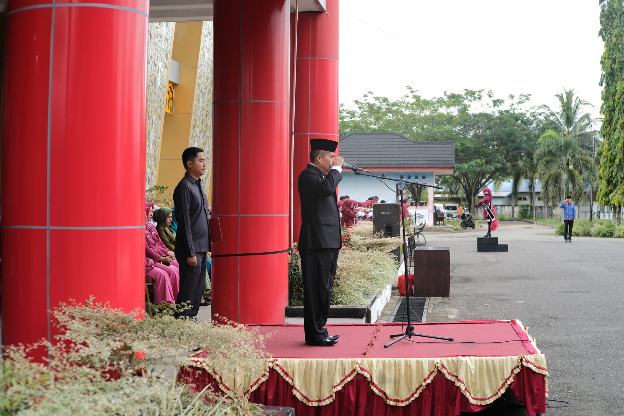 Upacara tersebut dihadiri juga oleh anggota DPRD Kabupaten Dharmasraya, Kapolres, Kajari, Dandim 0310 SSD, Ketua Pengadilan Negeri Pulau Punjung, Ketua Pengadilan Agama Pulau Punjung, Danyon C Brimob Pelopor Polda Sumbar, ASN, mahasiswa, siswa siswi SD, SMP dan SMA serta peserta upacara lainnya. (*)
