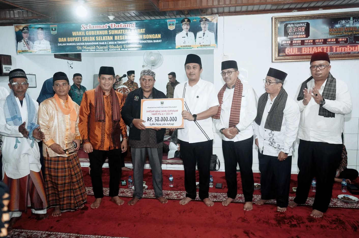 Langgam.id – Masyarakat Jorong Timbulun, Nagari Lubuk Gadang, Kecamatan Sangir menyambut dengan penuh antusias kedatangan Tim Safari Ramadan dari Pemerintah Kabupaten Solok Selatan dan Pemerintah Provinsi Sumatera Barat di Masjid Nurul Bakti, Selasa (11/3/2025) lalu.