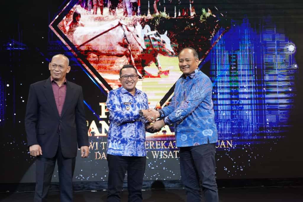 Usai menerima penghargaan, Bupati Eka Putra menyampaikan rasa syukur dan terima kasih kepada seluruh jajaran pemerintah daerah serta masyarakat Tanah Datar.