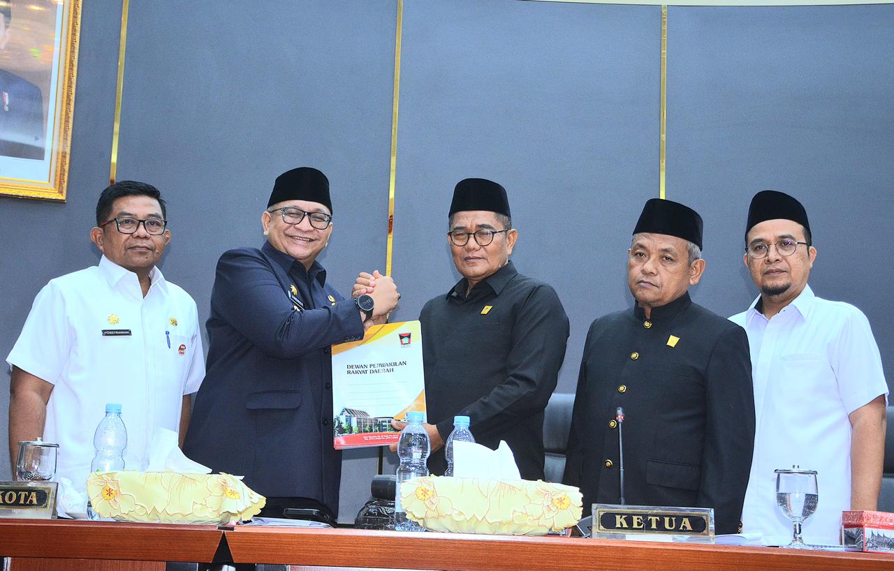 Kesepakatan ini ditandai dengan penandatanganan nota persetujuan oleh Penjabat (Pj) Wali Kota Padang Andree Algamar, bersama Ketua DPRD Kota Padang Syafrial Kani dan Wakil Ketua DPRD Arnedi Yarmen yang didahului penyampaian pendapat akhir fraksi-fraksi dalam Rapat Paripurna DPRD Kota Padang di Ruang Sidang Utama Kantor DPRD setempat, Rabu (7/8/2024) malam.