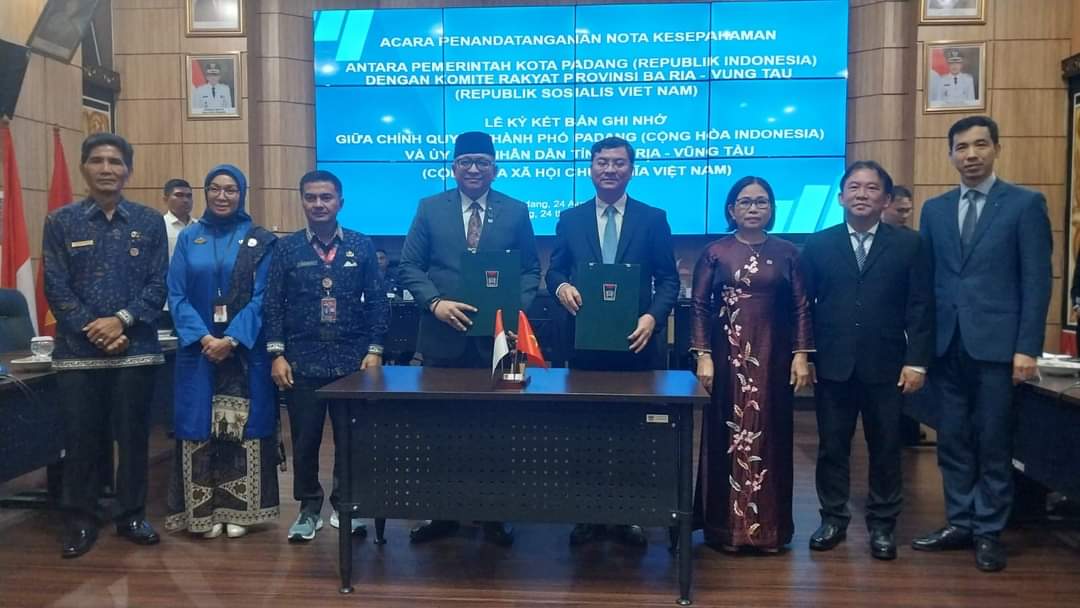 Penandatanganan Memorandum of Understanding (MoU) dilakukan oleh Sekretaris Daerah (Sekda) Kota Padang Andree Algamar mewakili Wali Kota Padang dengan Wakil Ketua Komite Rakyat Provinsi Ba Ria Vung Tau Nguyen Cong Vinh.