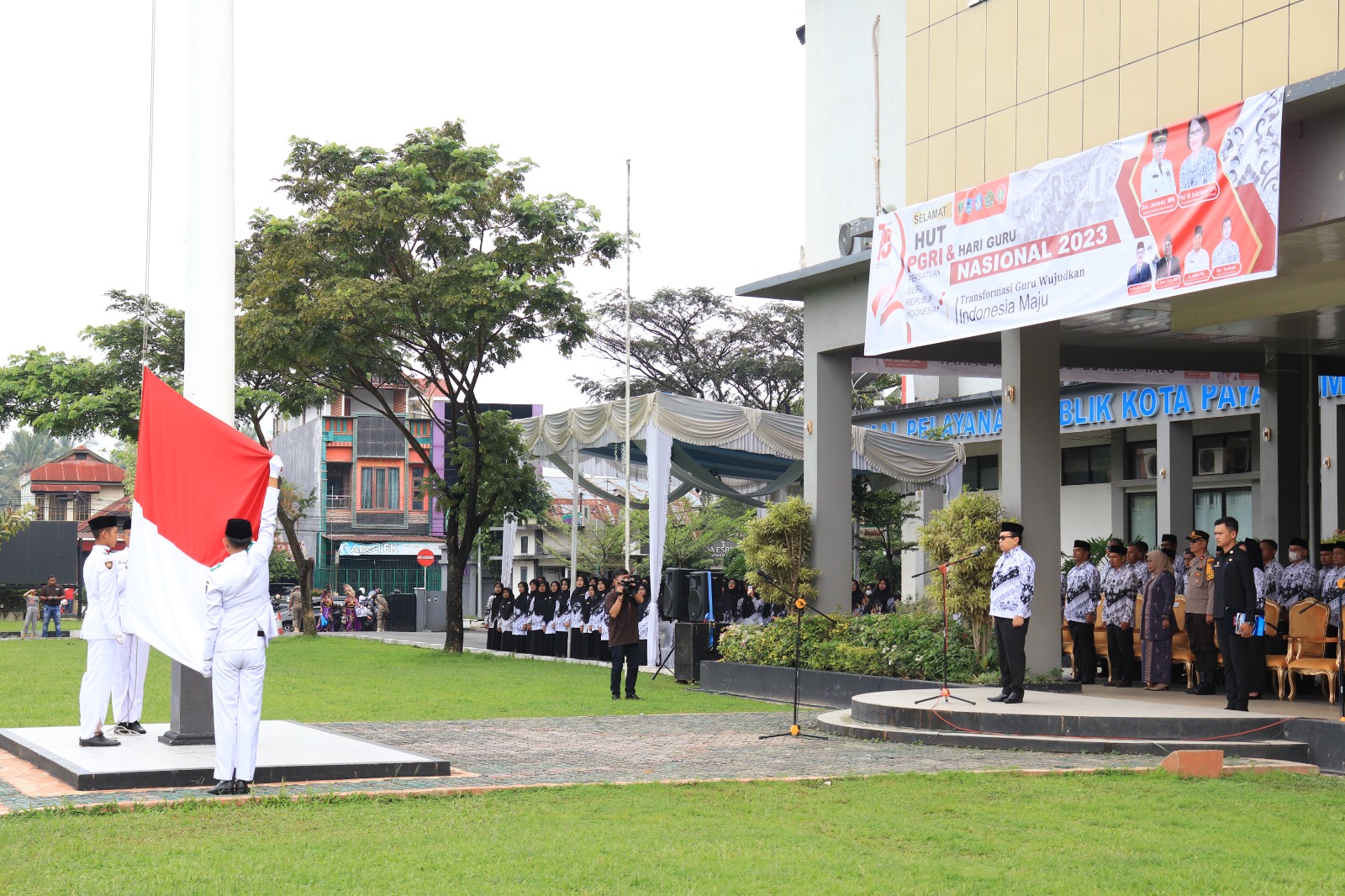 Langgam.id – Penjabat (Pj) Wali Kota (Wako) Payakumbuh Jasman menjadi pembina upacara pada peringatan Hari Guru Nasional (HGN) dan HUT ke-78 Persatuan Guru Republik Indonesia (PGRI) di Halaman Balai Kota Payakumbuh, Sabtu (25/11/2023).