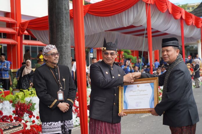 Penghargaan yang diserahkan Plh Sekda Sumbar Erinaldi dan Kepala BPS Sumbar Sugeng Arianto dan diterima langsung oleh Plt Asisten II Pemko Payakumbuh Wal Asri yang mewakili Pj Wali Kota usai Pelaksanaan Upacara Peringatan Sumpah Pemuda ke-96 di Kantor Gubernur Sumatra Barat, Senin (28/10/2024).