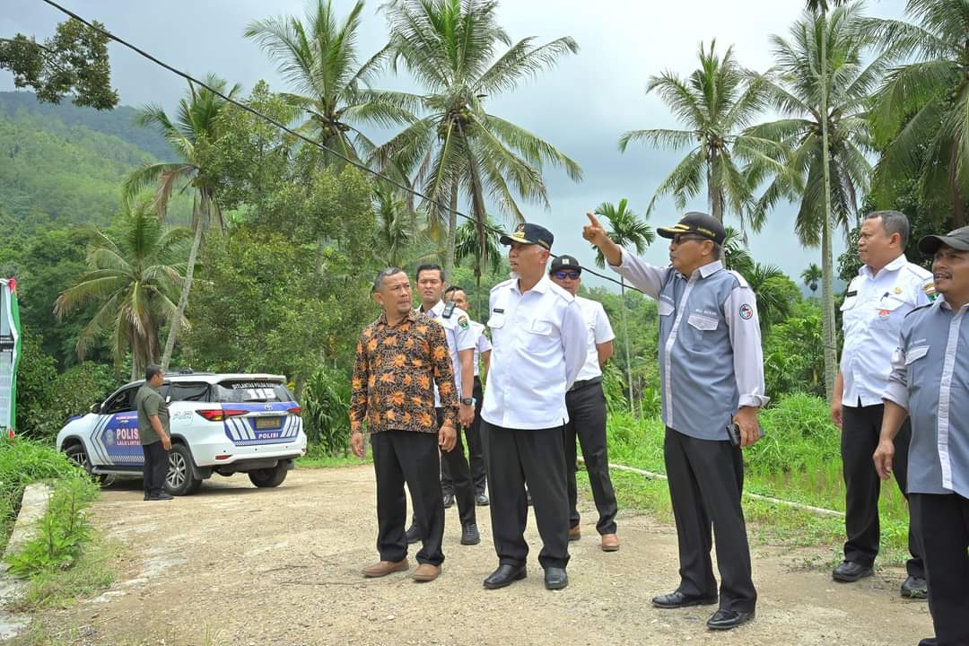 Gubernur Sumatera Barat, Mahyeldi Ansharullah, meninjau lokasi rencana pembangunan jalan penghubung wilayah Akabiluru di Kabupaten Lima Puluh Kota dengan Tilatang Kamang di Kabupaten Agam.