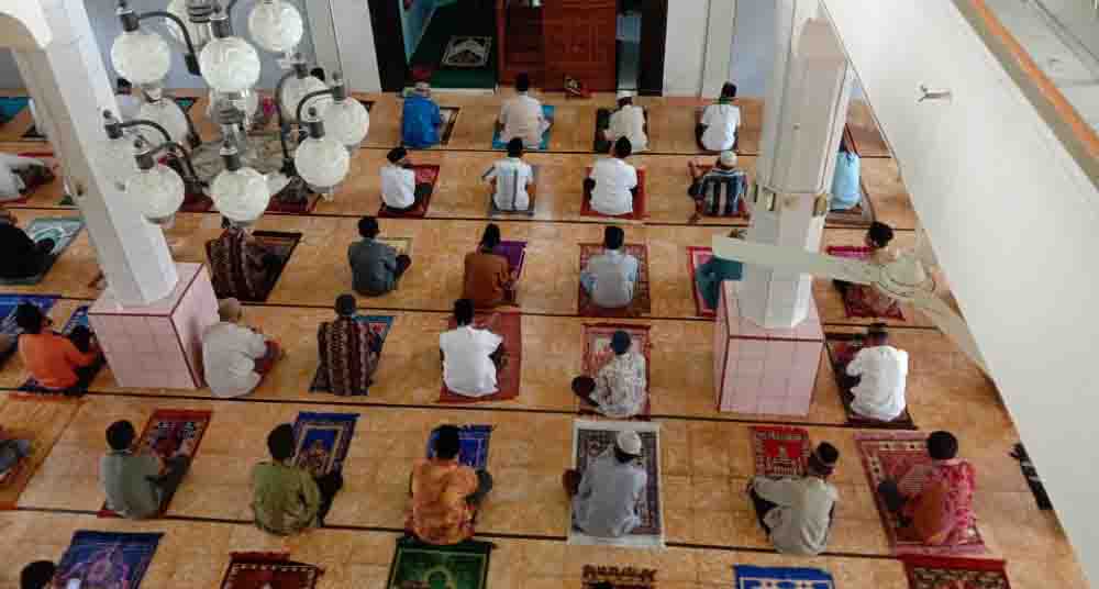 “Biasanya kalau berjamaah, saf harus rapat dan siku kita bersetuhan dengan orang lain. Namun untuk menjaga agar tidak tertular virus corona, maka ada jarak hingga satu meter,” ujarnya.