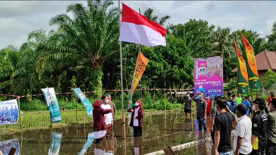 Upacara HUT RI berlangsung dengan khidmad, meski semua peserta dan penyelenggara harus diberidiri dan mengibarkan bendera di tengah sawah. Semua rangkaian upacara berjalan lancar, pasukan pengibar juga bisa melangkah dengan baik meski terhalang lumpur.