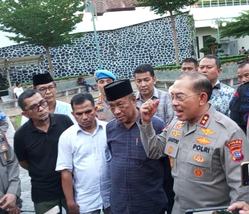 Langgam.id – Pengurus Masjid Raya Sumatera Barat (Sumbar), Yuzardi Ma’ad memberikan penjelasan terkait beredarnya video yang mangambarkan beberapa anggota polisi memasuki ruangan Masjid tanpa membuka alas kaki saat melakukan pengamanan massa, Sabtu (05/08/2023).