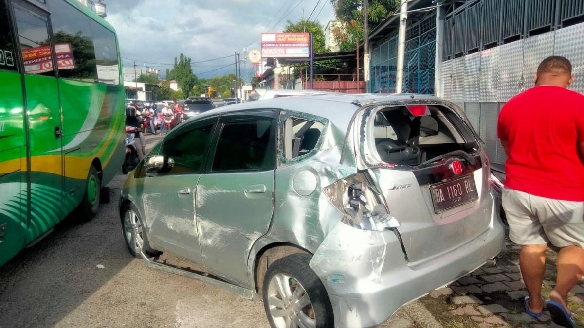 Langgam.id – Enam kendaraan terlibat kecelakaan beruntun di Jalan AR Hakim, Padang Selatan, Kota Padang, Minggu (12/12/2021). Polisi menduga kecelakaan ini diakibatkan pengendara Honda Jazz hilang kendali.