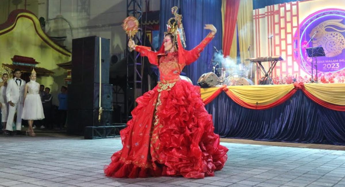 Peragaan busana etnik memeriahkan Pasar Malam Imlek di Kota Padang. [Irwanda/Langgam.id]