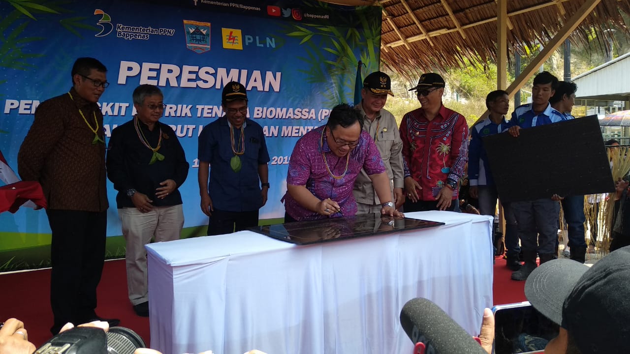 Kepala Bappenas Bambang Brodjonegoro meresmikan PLTBm di Mentawai (Foto: Irwanda)