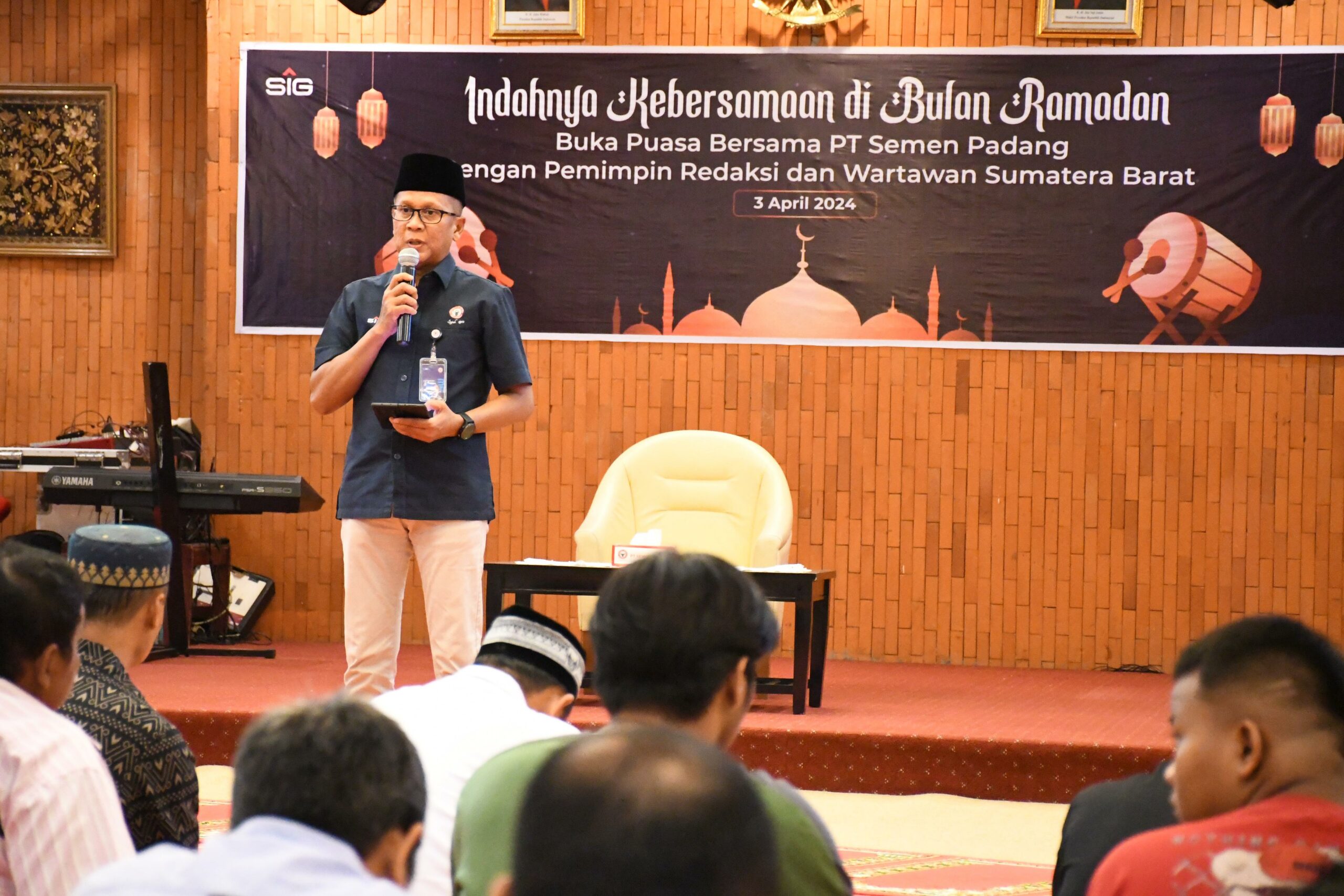 Dirut PT Semen Padang, Indrieffouny Indra menyampaikan rasa terima kasih yang sebesar-besarnya kepada pimpinan media, organisasi pers dan wartawan yang telah hadir memenuhi undangan PT Semen Padang untuk acara buka puasa bersama ini.