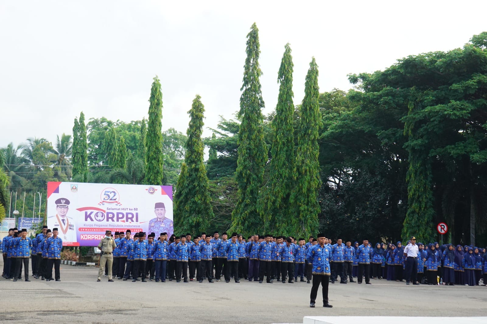 Langgam.id – Peringatan Hari Ulang Tahun ke-52 Korps Pegawai Republik Indonesia (KORPRI) di Dharmasraya digelar di halaman Kantor Bupati Dharmasraya, Rabu (29/11/2023).