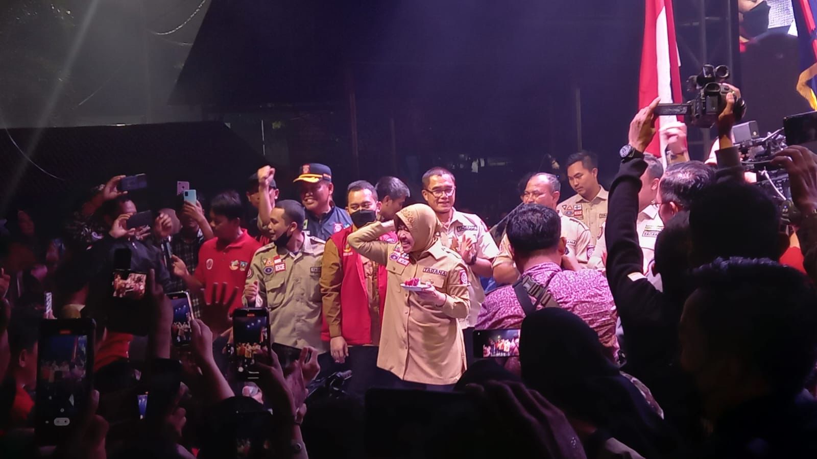 Langgam.id – Menteri Sosial Republik Indonesia (Mensos RI), Tri Rismaharini dalam memperingati HUT Tagana ke-19, di halaman Kantor Bupati Dharmasraya, Sumatra Barat (Sumbar) mengucapkan ribuan terimakasihnya atas peran yang telah diberikan Tagana ditengah masyarakat.