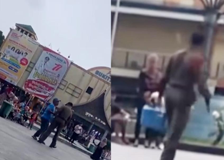 Dari video yang beredar di sejumlah media sosial, oknum Satpol PP terlihat tampak menarik paksa keranjang yang berisikan dagangan milik pedagang di kawasan Jam Gadang.