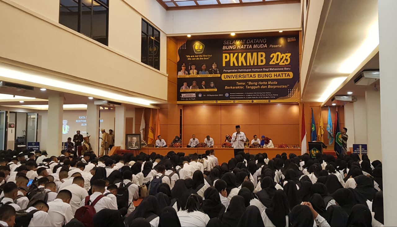 Ditempat yang sama Rektor UBH Prof. Tafdil Husni menyampaikan PKKMB Universitas Bung Hatta Tahun Akademik 2023/2024 yang mengusung tema “Bung Hatta Muda, Berkarakter, dan Tangguh”.