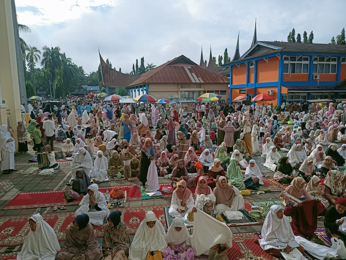 Langgam.id – Ribuan orang terlibat dalam salat id atau Idul Fitri 1445 Hijriah di Masjid Agung Darussalam Islamic Center Koto Baru, Kabupaten Solok, Rabu (10/4/2024). Salat id yang dikelola oleh Pemkab Solok itu dihadiri oleh Bupati Solok Epyardi Asda dan sejumlah pejabat teras Pemkab Solok.