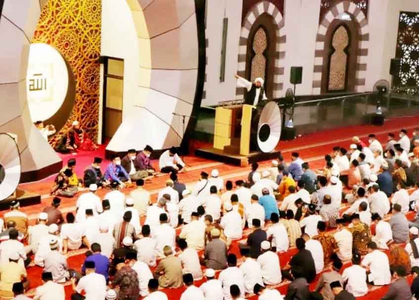 Ustad Derry Sulaiman saat ceramah di Masjid Raya Sumbar, Minggu (6/3/2022). (Foto: Dok. Diskominfotik Sumbar)