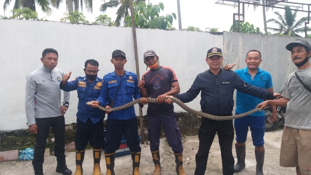 Langgam.id – Tim Animal Rescue Pemadam Kebakaran (Damkar) Payakumbuh mengevakuasi seekor ular besar jenis king kobra dengan panjang sekitar 3 meter, Sabtu (14/8/2021).