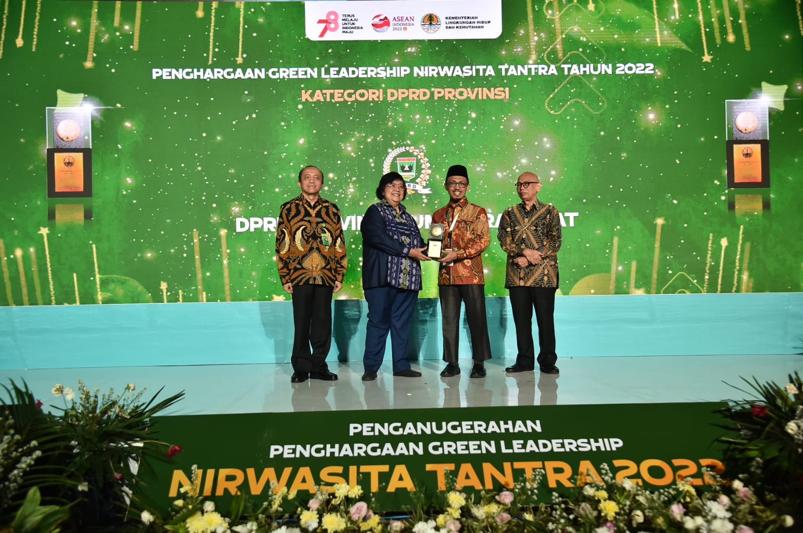 Langgam.id — Unsur pimpinan DPRD Provinsi Sumatera Barat (Sumbar) meraih penghargaan Green Leadership Nirwasita Tantra tahun 2022, Selasa (29/8). Penghargaan tersebut diterima langsung oleh Wakil Ketua DPRD Sumbar Irsyad Syafar di Auditorium Dr. Ir. Soedjarwo, Gedung Manggala Wanabakti