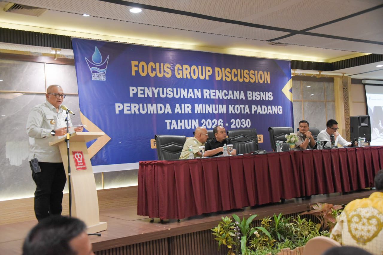 Langgam.id – Perusahaan Umum Daerah (Perumda) Air Minum (AM) Kota Padang menggelar Focus Group Discussion (FGD) Penyusunan Rencana Bisnis Tahun 2026-2030, di Hotel Pangeran Beach, Selasa (7/1/2025).
