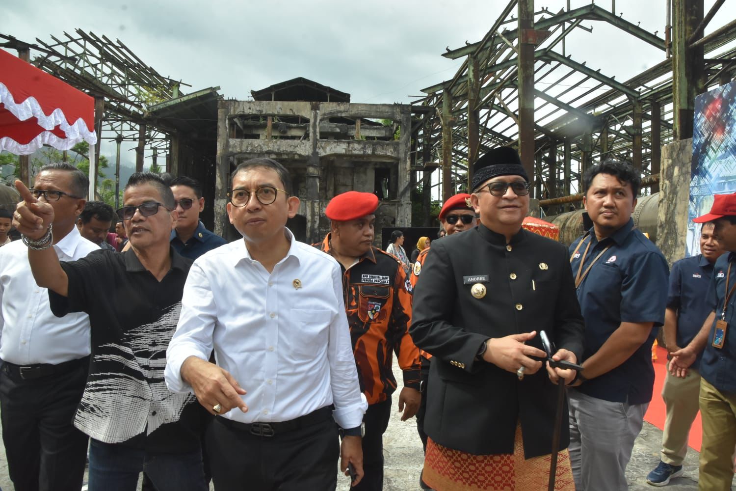 Pj Wako Padang Andree Algamar mendampingi Menbud Fadli Zon mengunjungi situs Indarung 1. (Foto: Prokopim Padang)