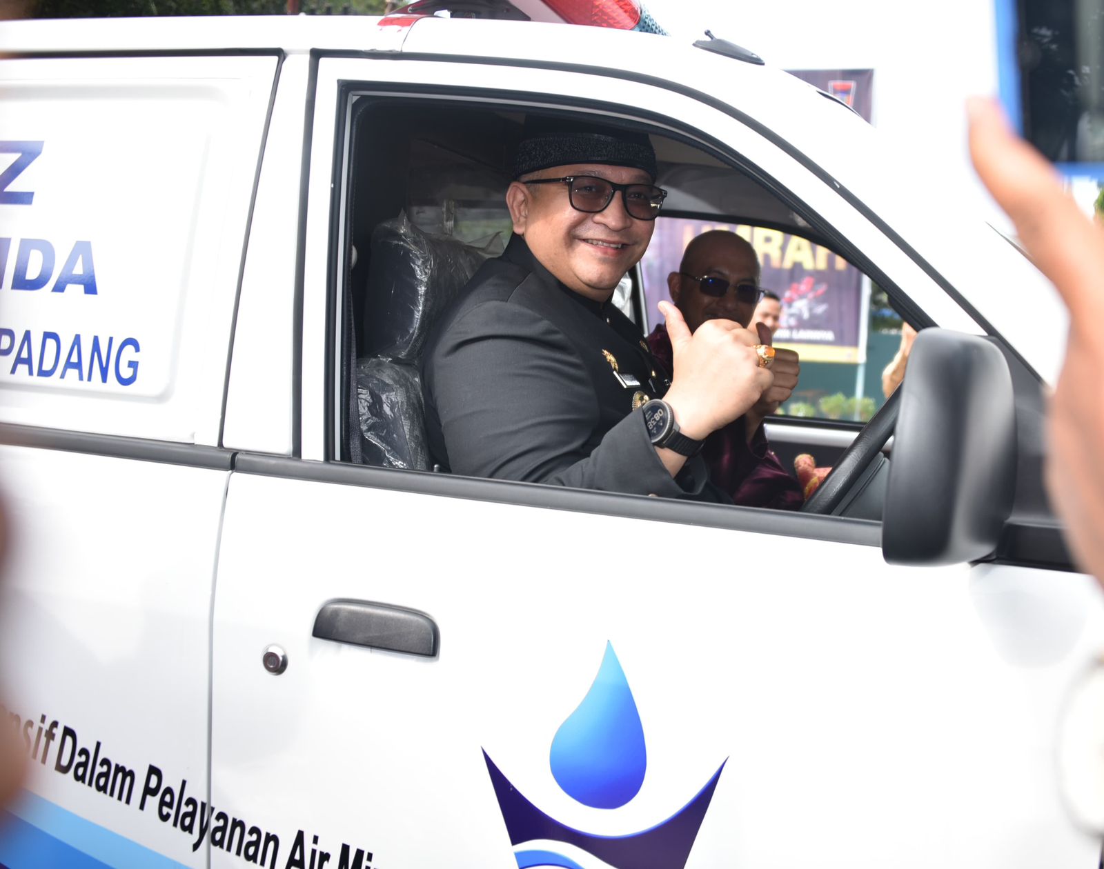 Dalam kesempatan ini juga dilakukan penyerahan satu unit mobil tangki untuk Perumda AM Kota Padang dari Bank Nagari, dan satu unit pompa intake dari Bank Mega Syariah. Selain itu juga penyerahan bantuan bedah rumah, becak motor dan gerobak kepada pelanggan Perumda AM yang beruntung. (*/Fs)