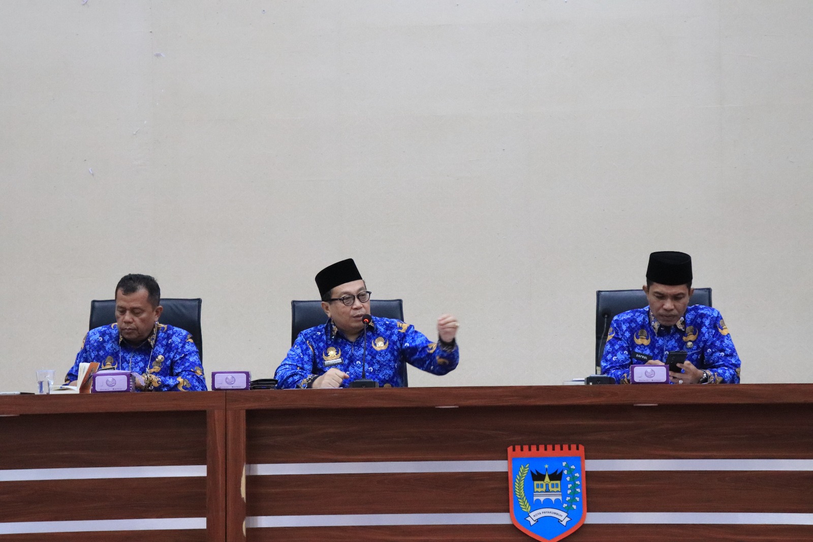 Pj Wako Payakumbuh Jasman saat rapat koordinasi (rakor) lurah se-Kota Payakumbuh di Balai Kota Payakumbuh. [foto: Pemko Payakumbuh]