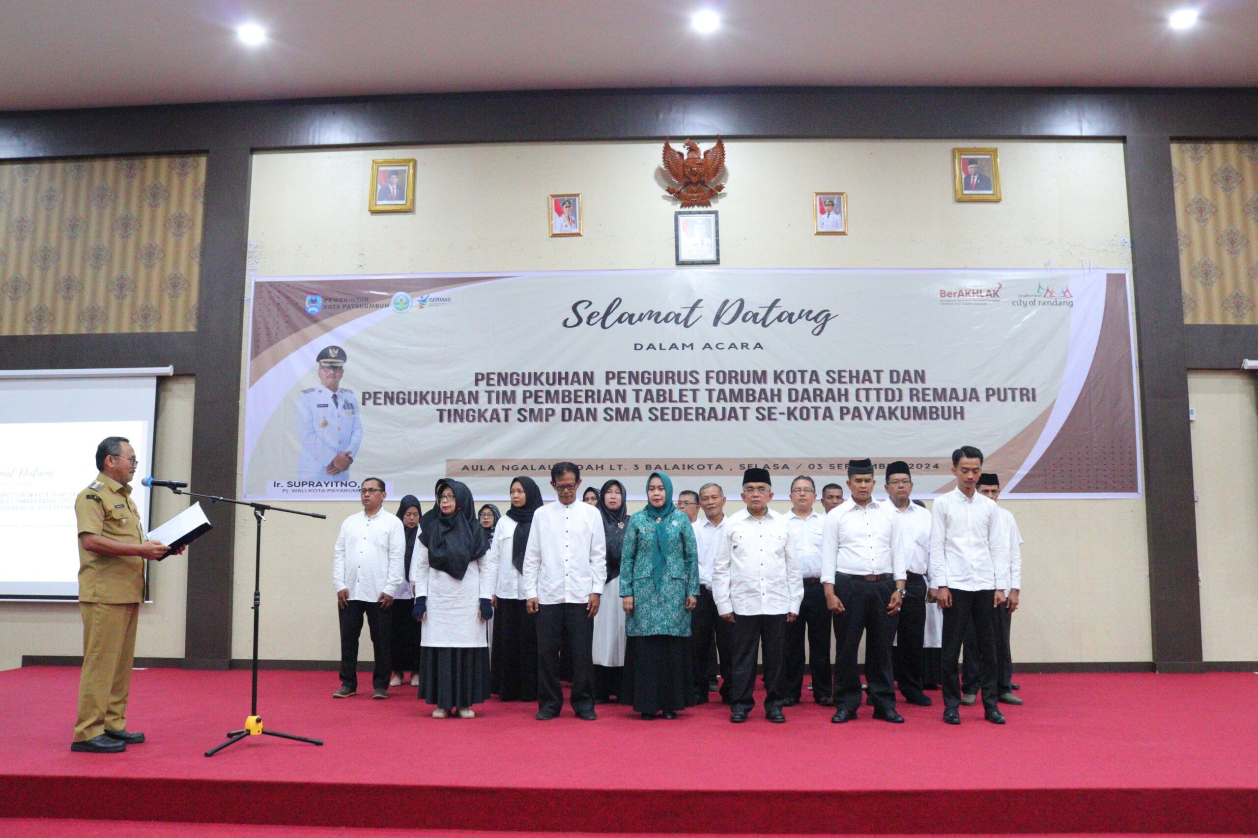 InfoLanggam – Penjabat (Pj) Wali Kota Payakumbuh, Suprayitno mengukuhkan Pengurus Forum Kota Sehat dan Pengukuhan Tim Pemberian Tablet Tambah Darah (TTD) Remaja Putri.