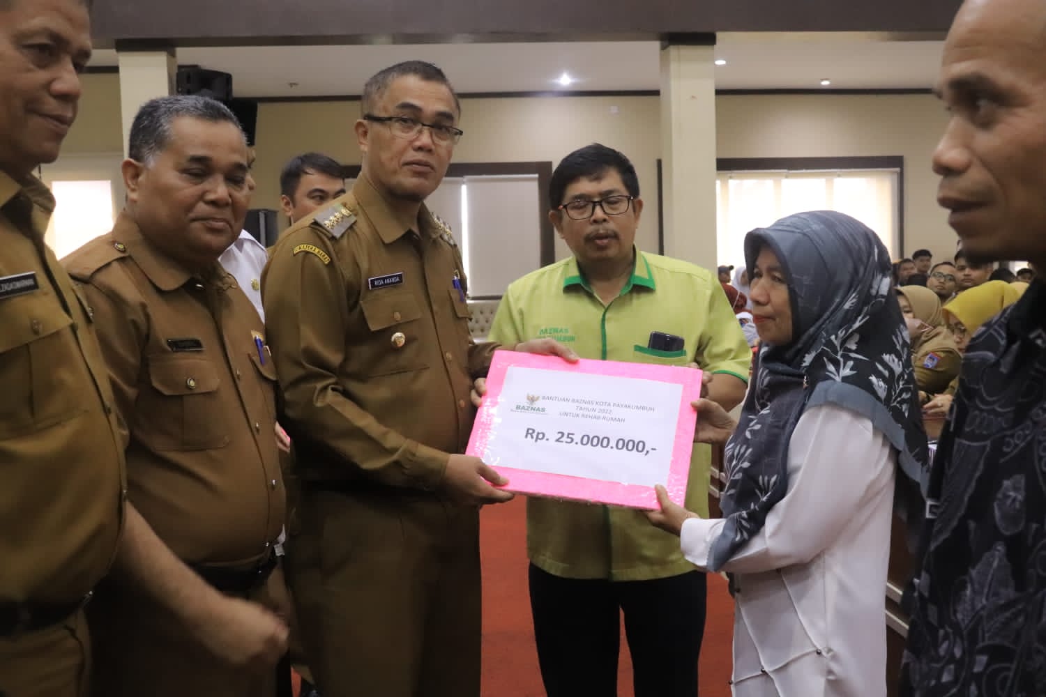 Langgam.id – Penjabat (Pj) Wali Kota Payakumbuh Rida Ananda menyerahkan bantuan untuk rehab rumah, usaha binaan dan untuk mahasiswa binaan yang bersumber dari Badan Amil Zakat Nasional (Baznas) Kota Payakumbuh.