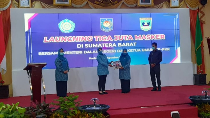 Langgam.id – Ketua Tim Penggerak Pemberdayaan Kesejahteraan Keluarga (TP-PKK) Pusat, Tri Tito Karnavian melaunching gerakan 3 juta masker untuk disebarkan di wilayah Sumatra Barat (Sumbar). Launching dilakukan di Auditorium Gubernuran Sumbar, Selasa (25/8/2020).