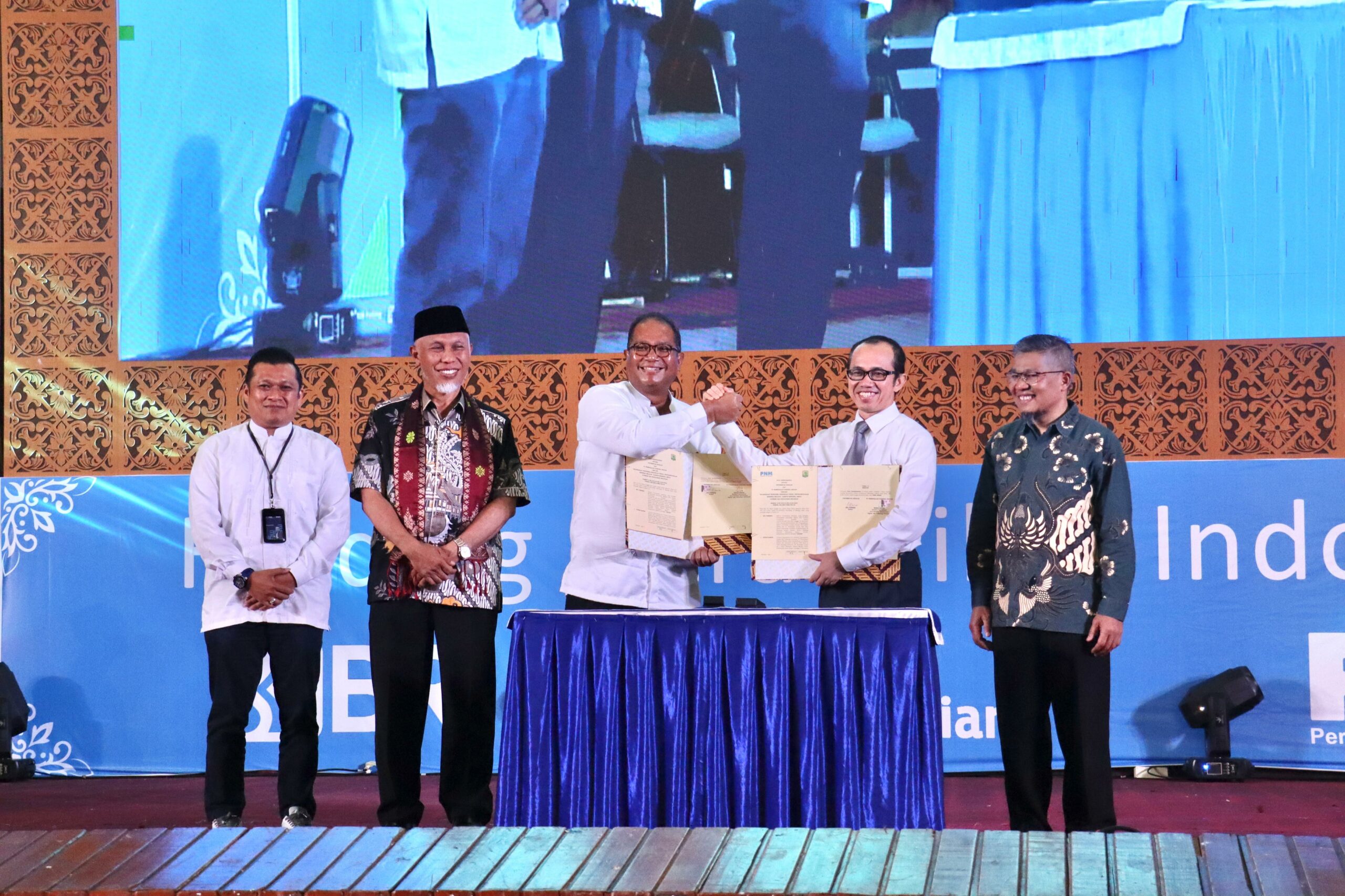 MoU ditandatangani oleh Direktur Operasional PNM dan Rektor Universitas Andalas yang disaksikan oleh Gubernur Sumatra Barat.