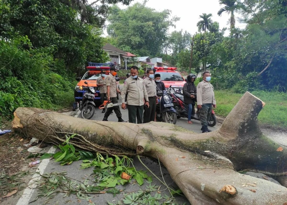 Pohon Setinggi 15 Meter Tumbang, Tutup Akses Jalan di Kuranji Padang