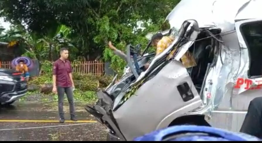 Langgam.id- Sebuah minibus tujuan Pasaman Barat – Padang tertimpa pohon tumbang di kawasan Batang Toman, Simpang Empat Pasaman Barat Jumat (6/5/2022). Satu penumpang dikabarkan meninggal dunia.