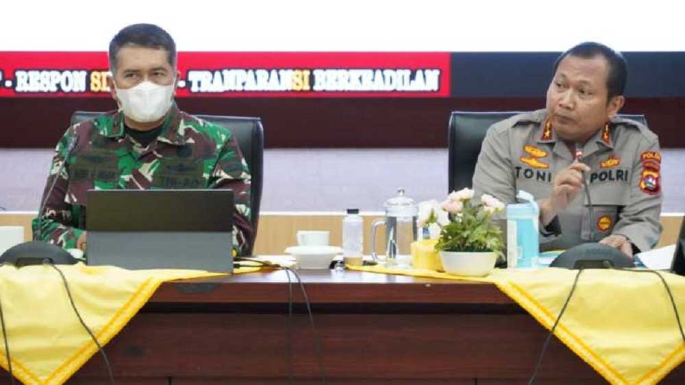 “Saya minta agar para Kapolres dan Dandim lebih ketat lagi dalam menerapkan protokol kesehatan di wilayahnya dan terus lakukan kolaborasi dengan Pemda dalam upaya memutus penyebaran virus Covid-19 ini serta terus lakukan evaluasi secara berkala dan terukur,” kata Kapolda.