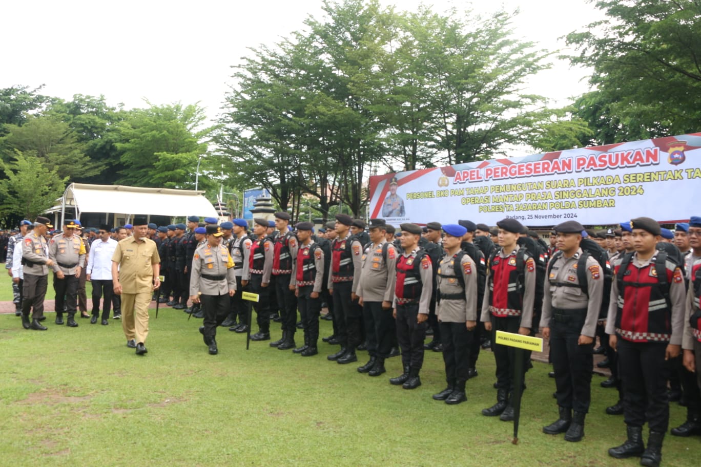 Langgam.id — Sebanyak 1.109 personel gabungan Polda Sumatra Barat diberangkatkan ke polres jajaran untuk mengamankan Tempat Pemungutan Suara (TPS) pada pemilihan kepala daerah serentak yang akan digelar Rabu (27/11/2024) mendatang.