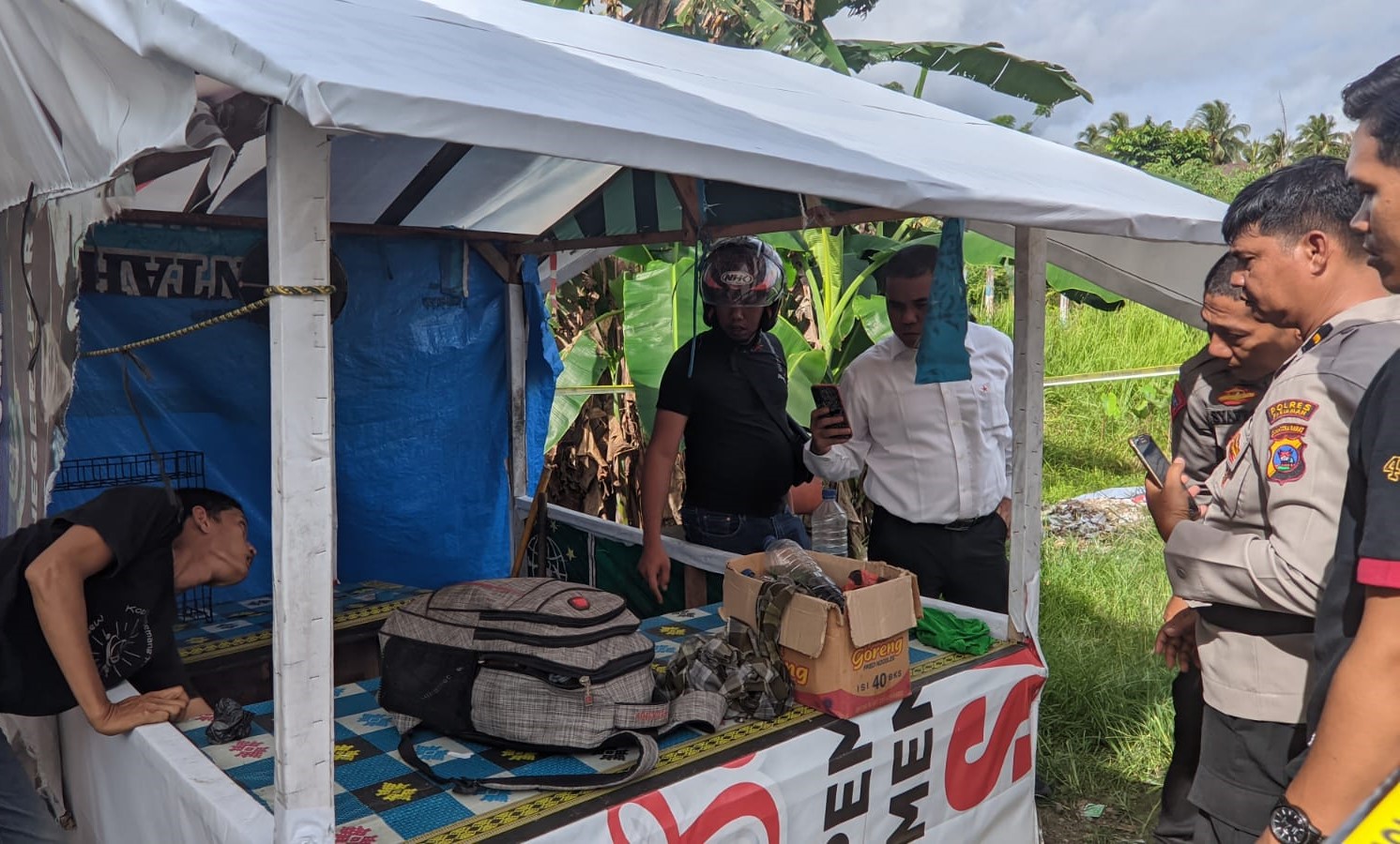 Pemilik warung, menurutnya, berencana membersihkan warung. “Ternyata menemukan rangkaian bom ikan. Juga ditemukan bahan bakar jenis pertalite 2 botol dan tas berisi pakaian.”
