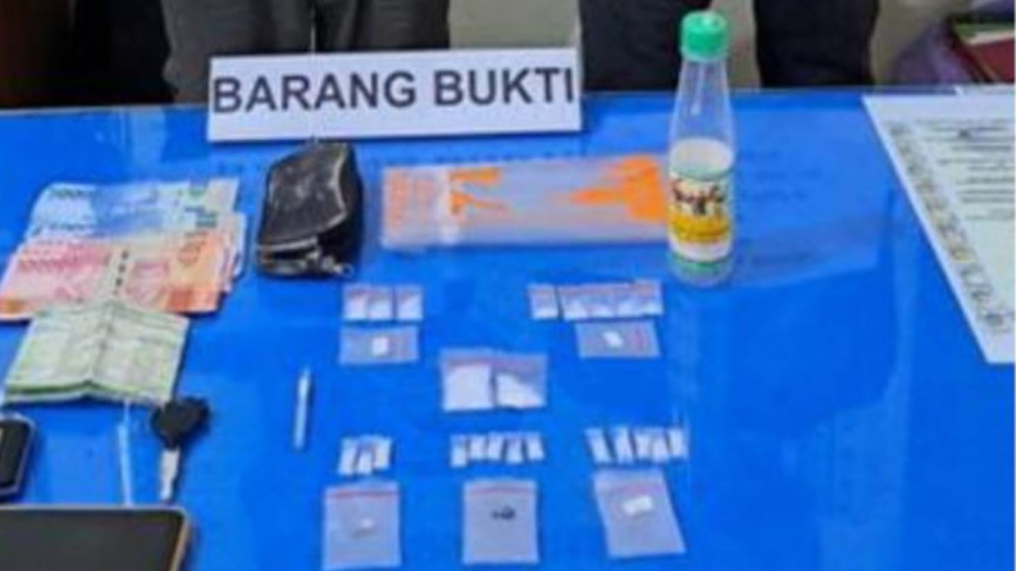 Tim menemukan satu paket narkotika jenis sabu di TKP yang sebelumnya dibuang oleh pelaku. Selain itu, satu paket lainnya juga ditemukan di kamar Pelaku yang merupakan rumah mertua pelaku. Selain itu tim juga menemukan barang bukti lain berupa satu alat hisap bong dan satu unit alat timbangan digital.