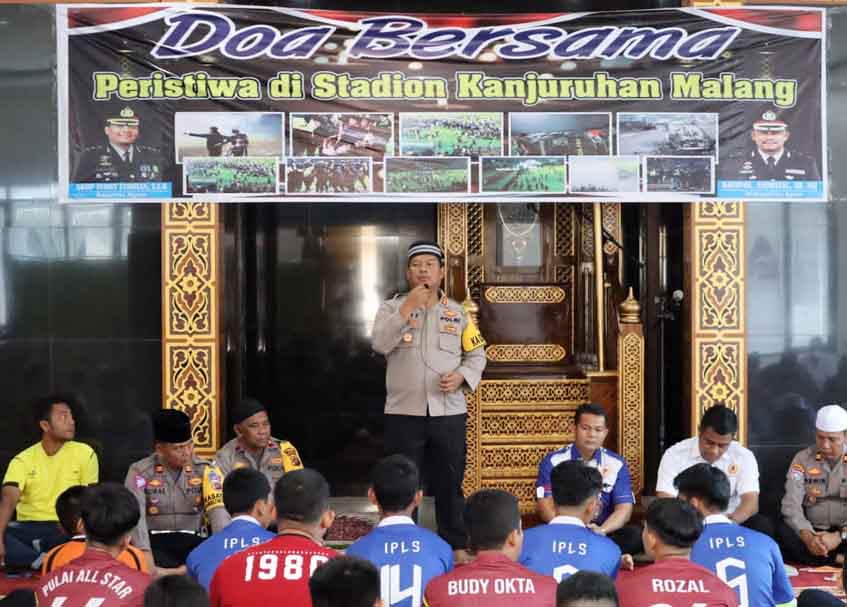 Langgam.id – Kepolisian Resor (Polres) Kabupaten Agam menggelar doa bersama atas keprihatinan tragedi Kanjuruhan di Masjid Baitun Nur Mapolres Agam, Selasa (4/10/2022).
