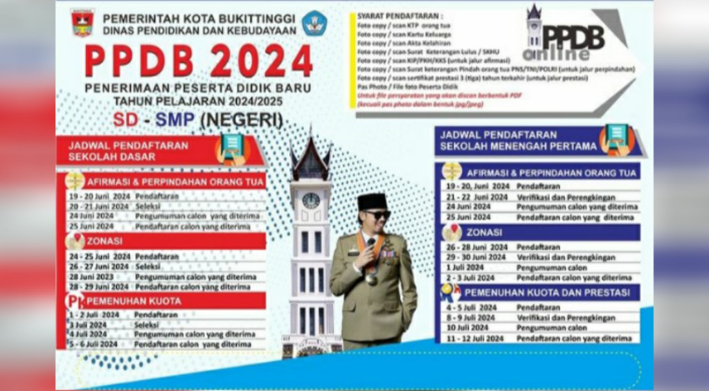 Sementara itu, syarat pendaftaran PPDB 2024 di Bukittinggi yaitu: