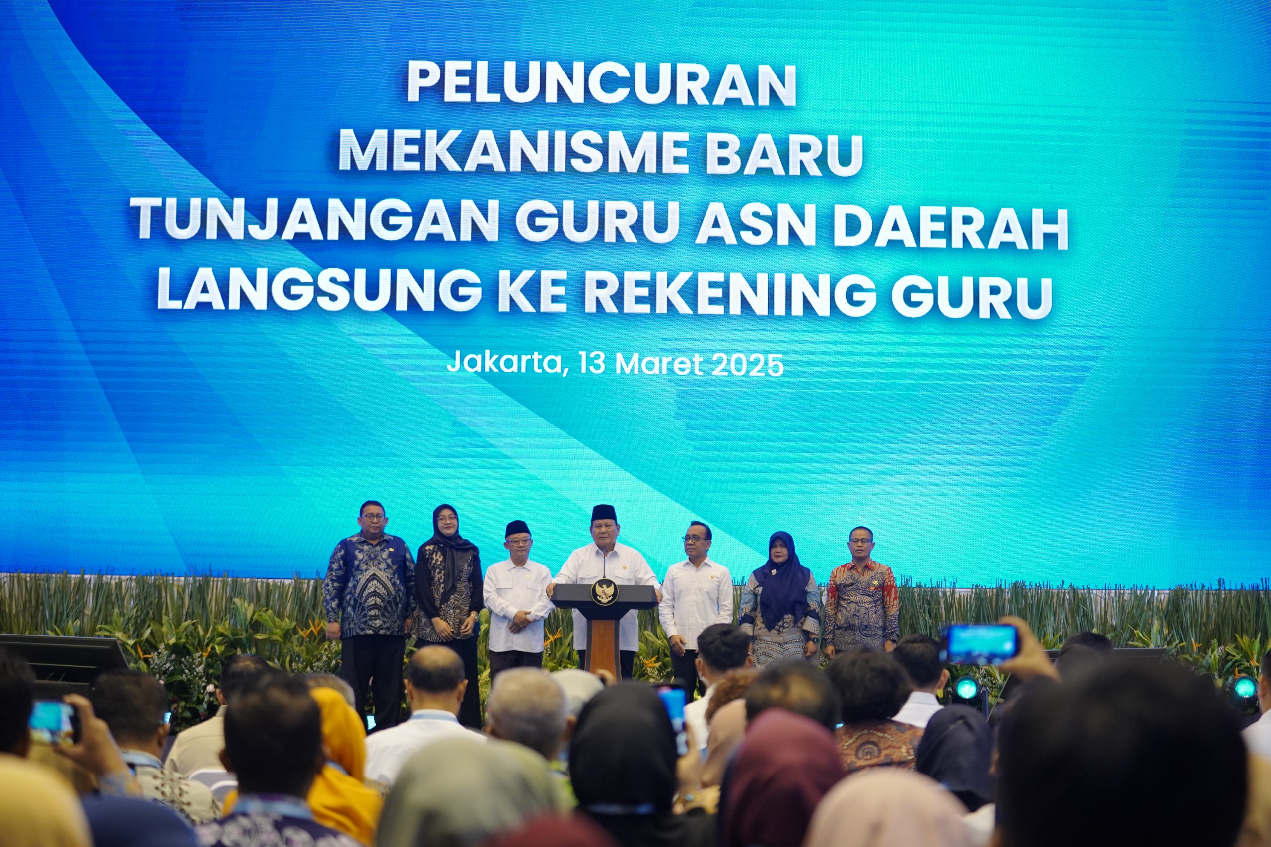 Hal ini disampaikan Prabowo dalam acara Peluncuran Mekanisme Baru Penyaluran Tunjangan Guru ASN Daerah di Plaza Insan Berprestasi, Kantor Kemendikdasmen, Jakarta, Kamis (13/3/2025).