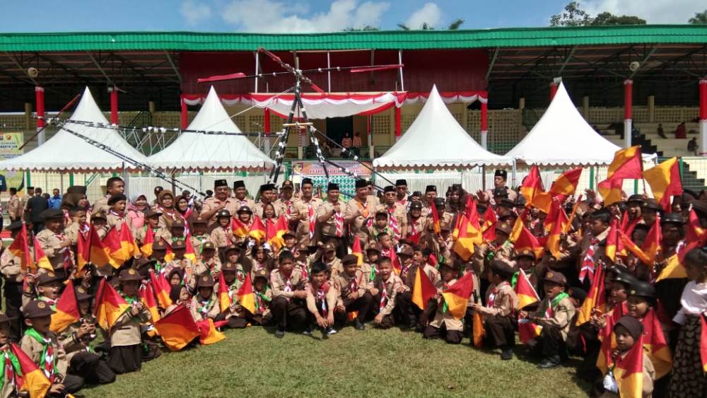 Langgam.id – Ketua Kwarda Pramuka Sumatra Barat, Nasrul Abit bertindak sebagai pembina upacara dalam peringatan upacara hari pramuka ke 58 tahun 2019 tingkat kwartir cabang pramuka Kabupaten Sijunjung, yang dilaksanakan di lapangan M. Yamin, Kab. Sijunjung, Kamis (29/8/2019).