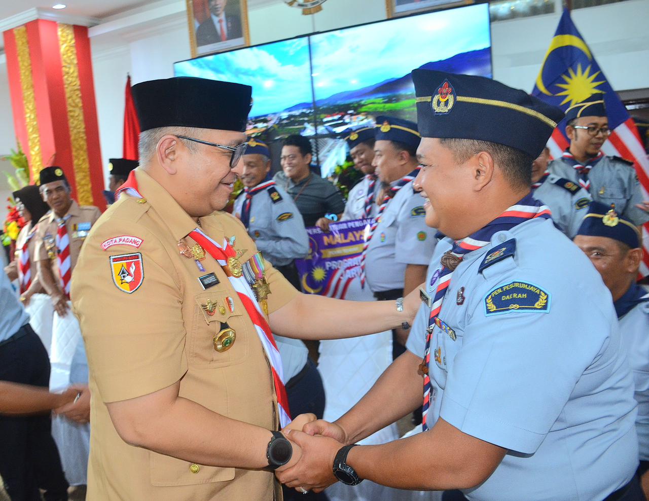 Kedatangan rombongan yang dipimpin Pesuruh Jaya Pengakap Daerah Perak Tengah, Zahari Bin Omar ini, disambut Ketua Kwarcab 09 Gerakan Pramuka Kota Padang Andree Algamar yang juga Penjabat (Pj) Wali Kota Padang di kediaman resmi Wali Kota Padang.