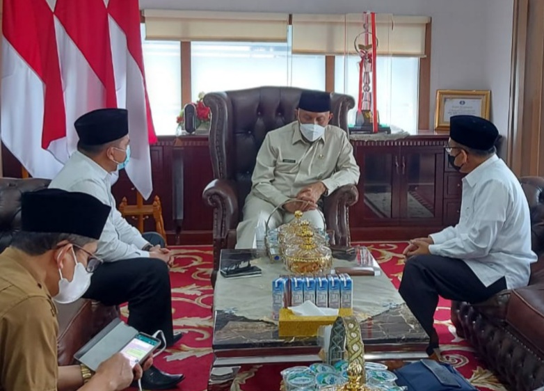 Pelaksana Tugas (Plt) Kepala Kantor Wilayah Kementerian Agama (Kanwil Kemenag) Sumatra Barat, (Sumbar) Syamsuir melakukan koordinasi bersama Gubernur Sumbar, Mahyeldi terkait pelaksaan Pray From Home (PFH) tingkat Sumbar, Selasa (14/7/2021).