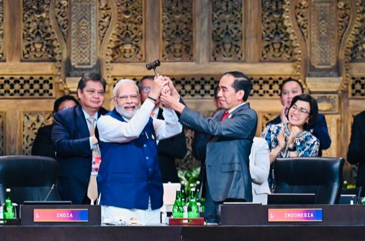Sementara itu, PM Narendra Modi dalam sambutannya mengucapkan selamat kepada Presiden Joko Widodo yang telah memberikan kepemimpinan yang efisien pada G20, bahkan di masa-masa sulit. PM Modi juga mengucapkan selamat kepada seluruh negara G20 yang telah mengadopsi Deklarasi G20 Bali.