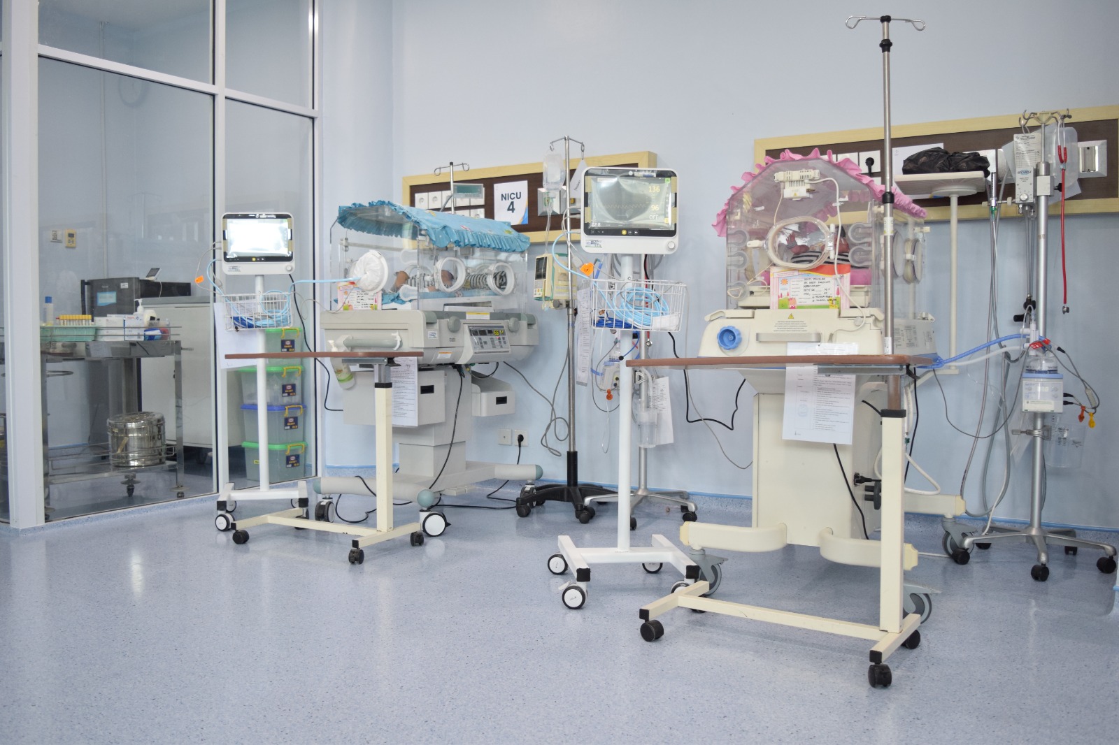 • Sterilisasi dan Higiene: NICU memiliki prosedur ketat untuk sterilisasi dan higiene. Semua peralatan medis, inkubator, dan lingkungan NICU dijaga agar tetap steril untuk mencegah infeksi.