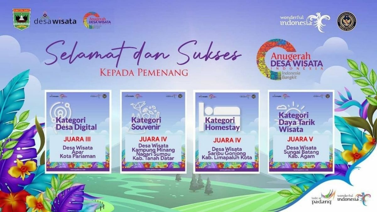 Langgam.id – Sumatra Barat (Sumbar) berhasil meraih empat penghargaan dalam ajang Anugerah Desa Wisata Indonesia (ADWI) 2021.