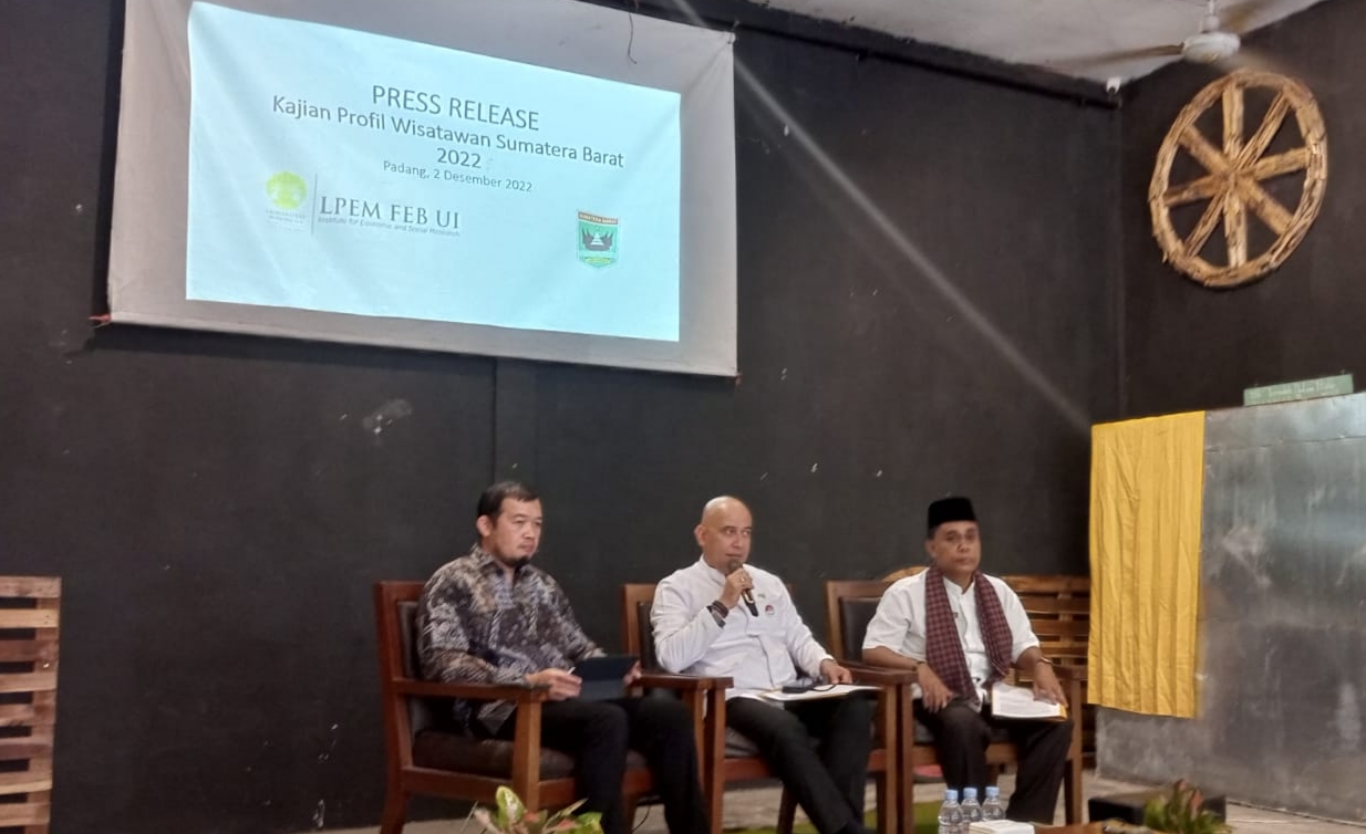 Langgam.id – Dinas Pariwisata Sumbar bekerjasama dengan Lembaga Penyelidikan Ekonomi dan Masyarakat (LPEM) UI, merilis kajian profil wisatawan Sumatra Barat 2022, Jum’at (2/12/2022).