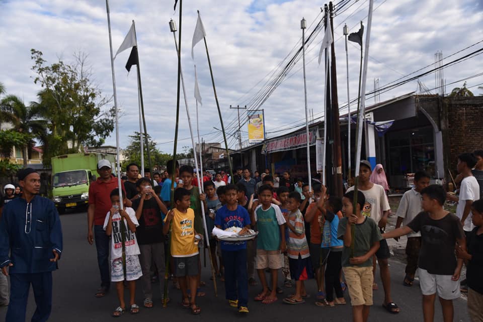 Tanah di dalam baki tersebut kemudian diarak menuju Rumah Tabuik masing-masing tempat. Dalam arak-arakan Tabuik Pasa dan Tabuik Subarang, banyak anak-anak membawa galah bambu sepanjang 2-3 meter. Pada ujung galah itu, diikatkan bendera warna hitam dan putih serta lampu sumbu minyak tanah.